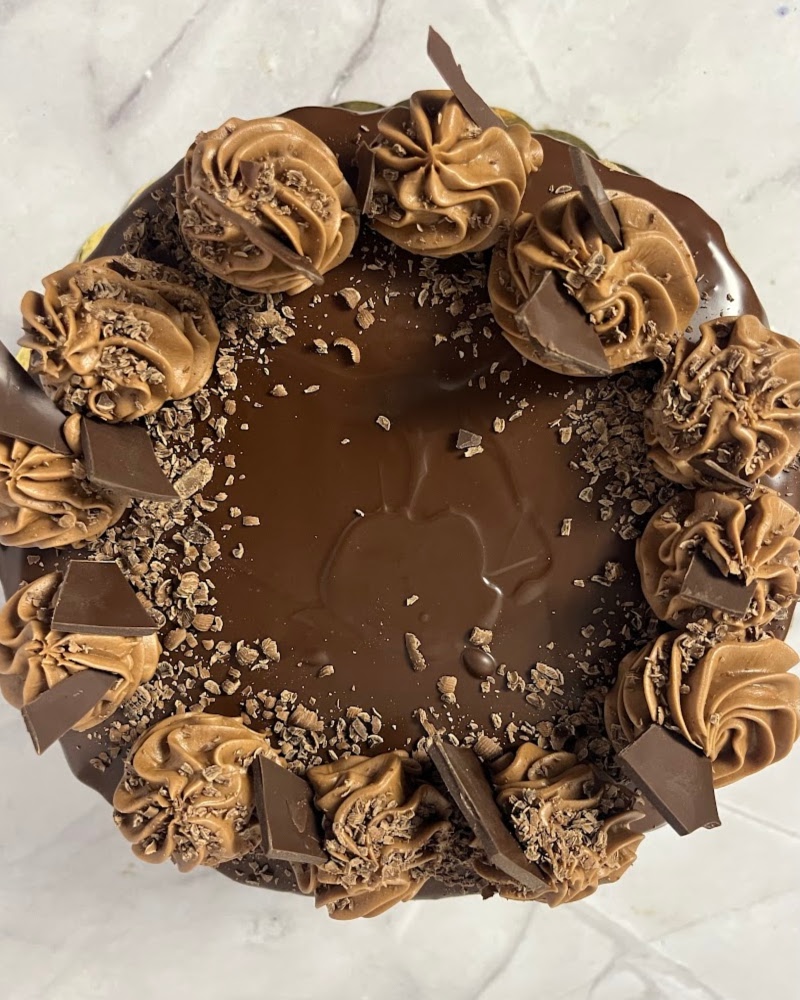 This one’s for the chocolate lovers! Our chocolate fudge specialty cake is made up of four thin layers of rich chocolate cake filled with gooey fudge icing and iced with chocolate buttercream. Decadent chocolate ganache and dark chocolate pieces are the perfect topping for this indulgent cake.